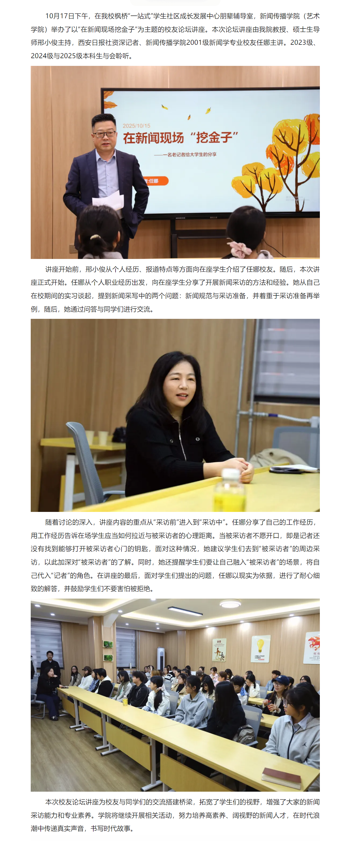 无码影片 举办校友论坛讲座之在新闻现场挖金子——一名老记者给大学生的的采访实操分享