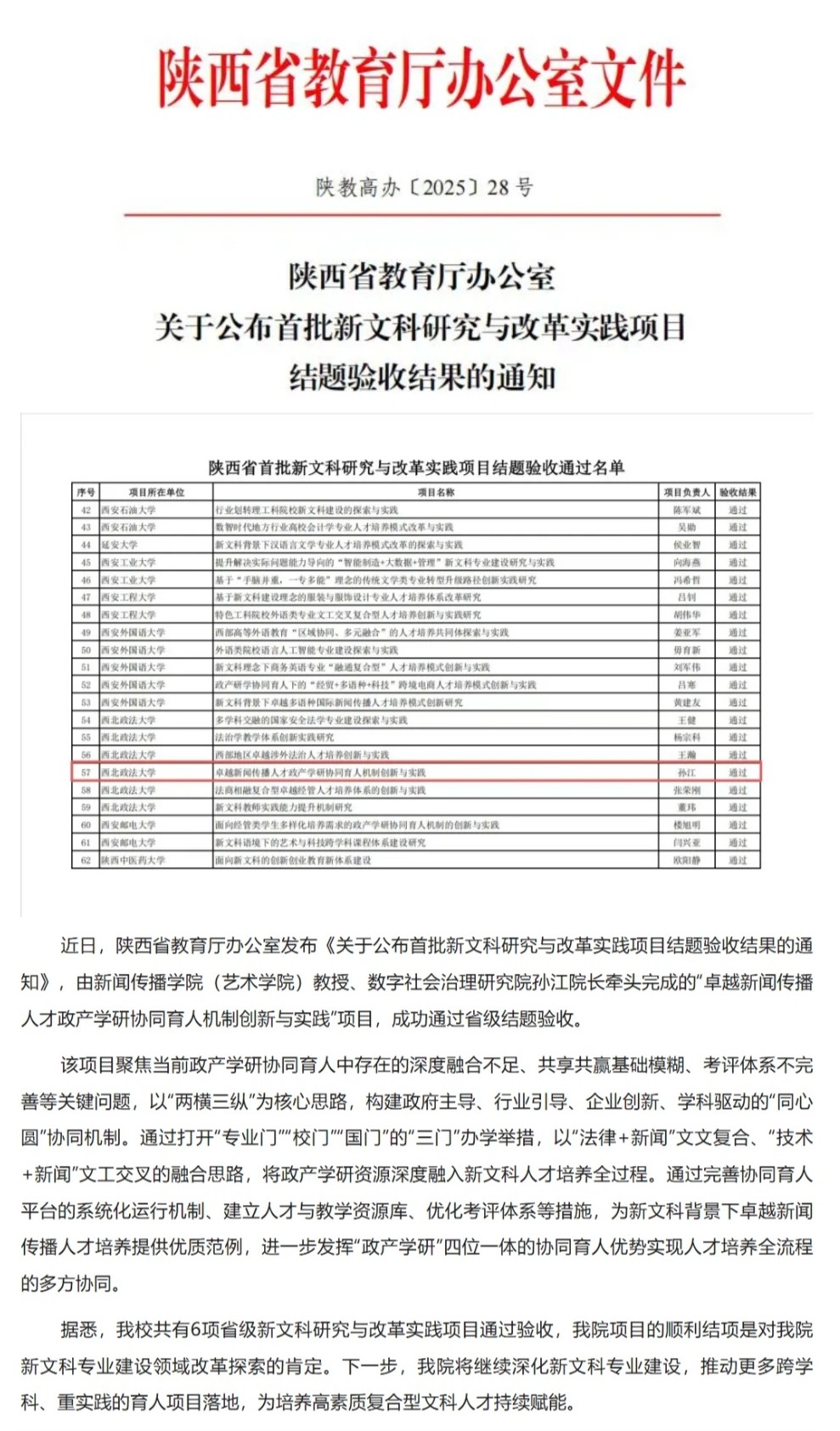 喜报 | 无码影片 获批的“卓越新闻传播人才政产学研协同育人机制创新与实践”项目顺利通过省级新文科项目结题验收